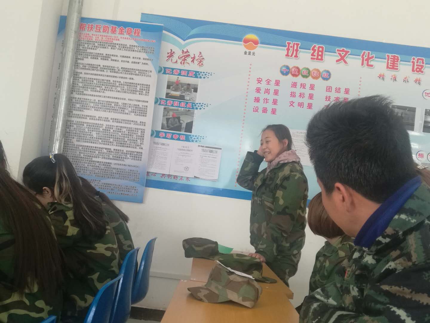 我们是化工企业,安全是我们保证生产盈利发展的前提。公司军训使我很受教育,对我的思想,精神行为有了修正。做人要懂得规矩、纪律。只有对自己负责才能对公司负责,安全意识时刻不忘。
