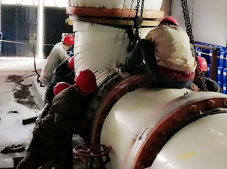 各效体刷洗、水封桶漏点补焊、高空管道等各个漏点的检查、修复、设备零件的更换,检修现场处处都是检修人员全力奋战的身影。