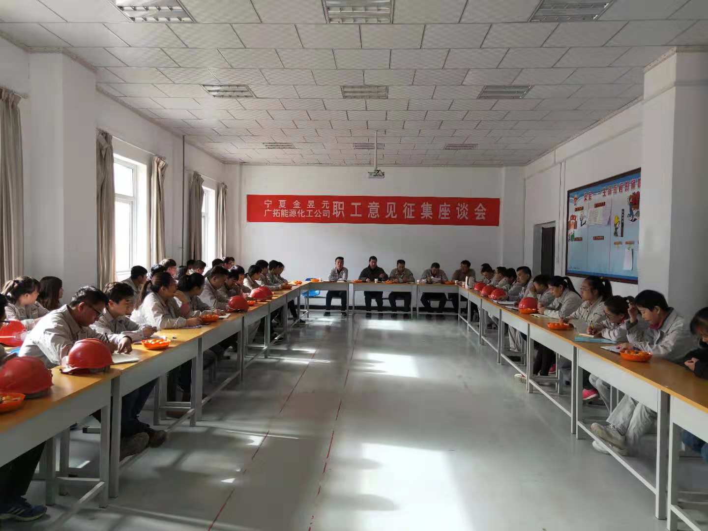 按照集团公司党委工作安排,12月5日上午8:30-10:00和下午13:30-15:00,广拓化工公司氯碱系统和树脂系统职工意见座谈会分别在化工公司多媒体培训室召开,面对面听取职工代表对公司各项管理的意见和建议,集团公司党委副书记,工会主席王立军出席会议并讲话,化工公司工会主席王志杰主持会议。