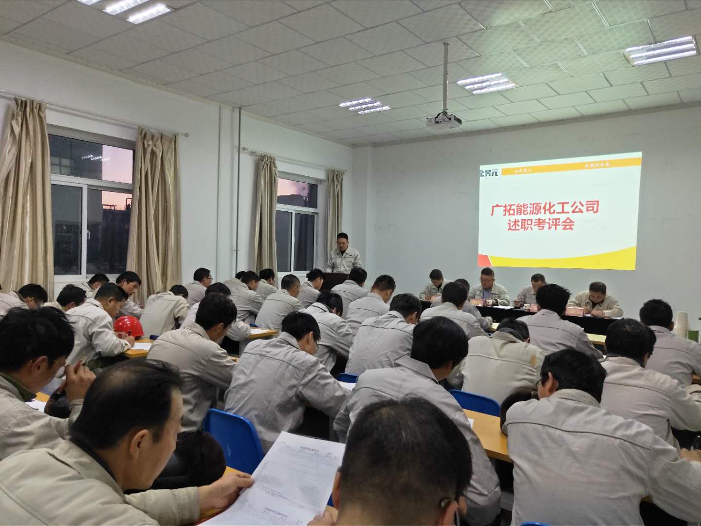 按照集团公司及固原片区管理中心工作安排,金昱元广拓化工公司氯碱系统和树脂系统管理人员述职考评会分别于2018年12月24日和2019年1月2日在化工公司多媒体培训室组织召开。化工公司领导班子成员、技术员以上管理人员以及相关基层单位代表等130余人参会,会议由兴昊永胜盐业支部副书记王志杰主持。