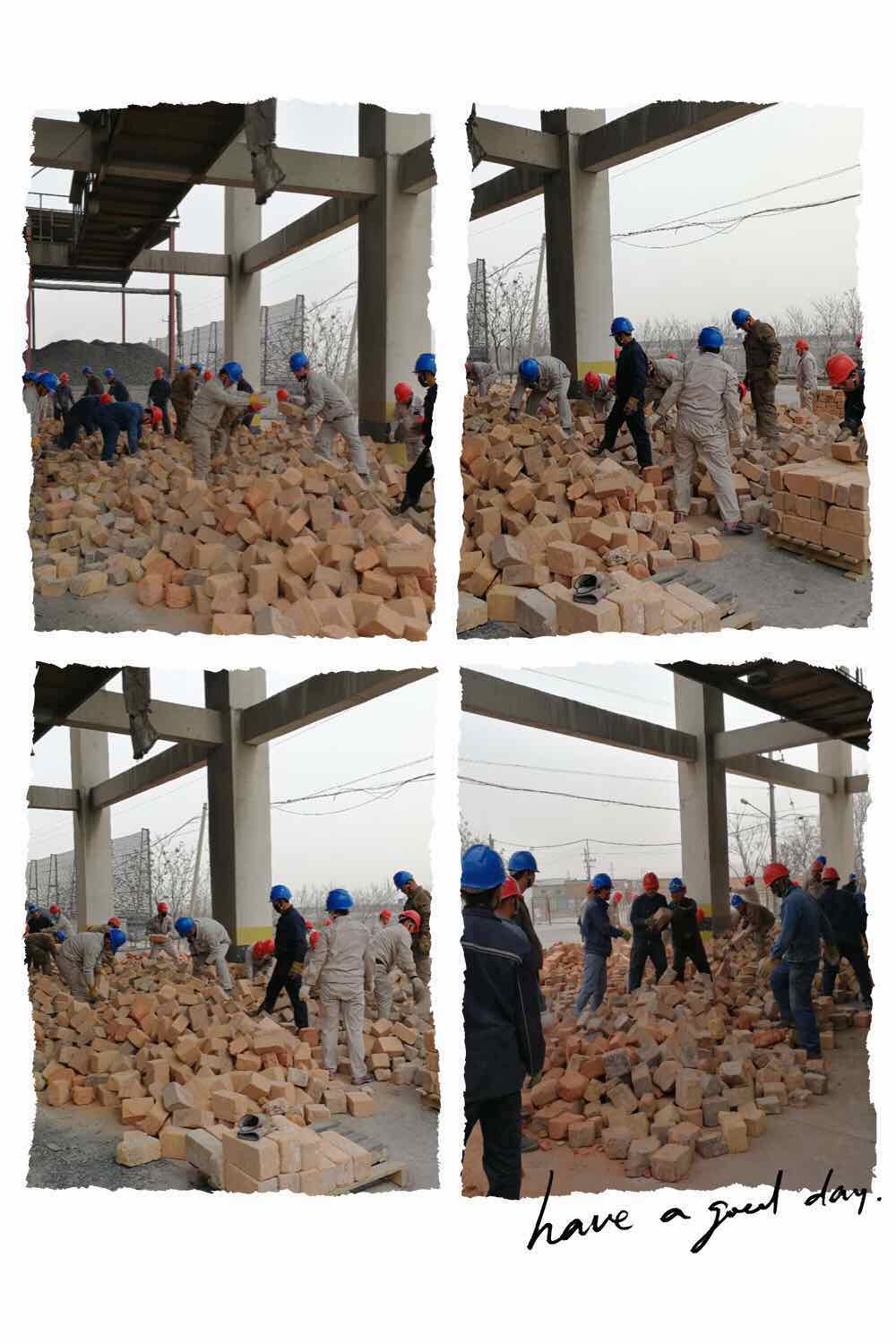 近几天,公司领导带领各装置日勤人员,筛检白灰窑拆除下来的能重复利用的旧耐火砖,大家齐心协力,没有一句怨言,有的只是埋头苦干,正是这样一群可爱的人将美好的希望播种在白灰窑的各个角落,默默坚守辛勤耕耘等待着收获,绝缘抗压的劳保鞋,厚实的手套是他们作战的防护装备,任凭天气如此炎热都不会抛弃,他们时时刻刻把工作放在心中,让“劳动”创造者最美的价值。