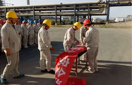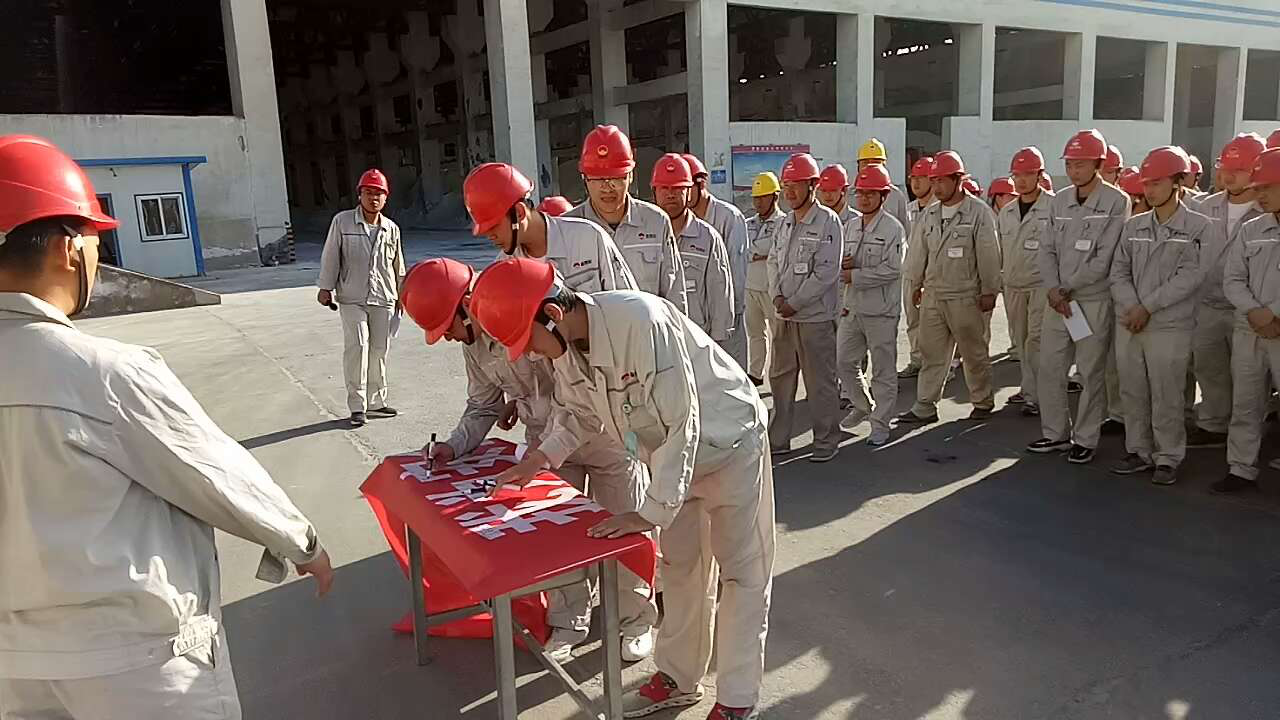 随后总经理尚继荣带领大家宣读以:“我是金昱元集团一名员工,为了个人安全健康,为了家庭幸福美满,为了公司稳步发展,我郑重宣誓:忠诚企业,恪尽职守,关注安全,珍爱生命。我坚决做到:牢记安全第一,遵守规章制度,遵守操作规程,遵守劳动纪律,不违章,不冒险,不留隐患,不出事故。我将以实际行动,争做安全合格员工,确保生产安全,让企业放心”为内容的安全誓词。最后,在尚总的带头下,所有参会人员在“防风险、除隐患、遏事故”的条幅上签名,承诺自己将以的实际行动,履行好本岗位的安全职责。简单的一个签名不仅签下对自己和家人的一份责任,同时也签下对企业安全发展的一个承诺。