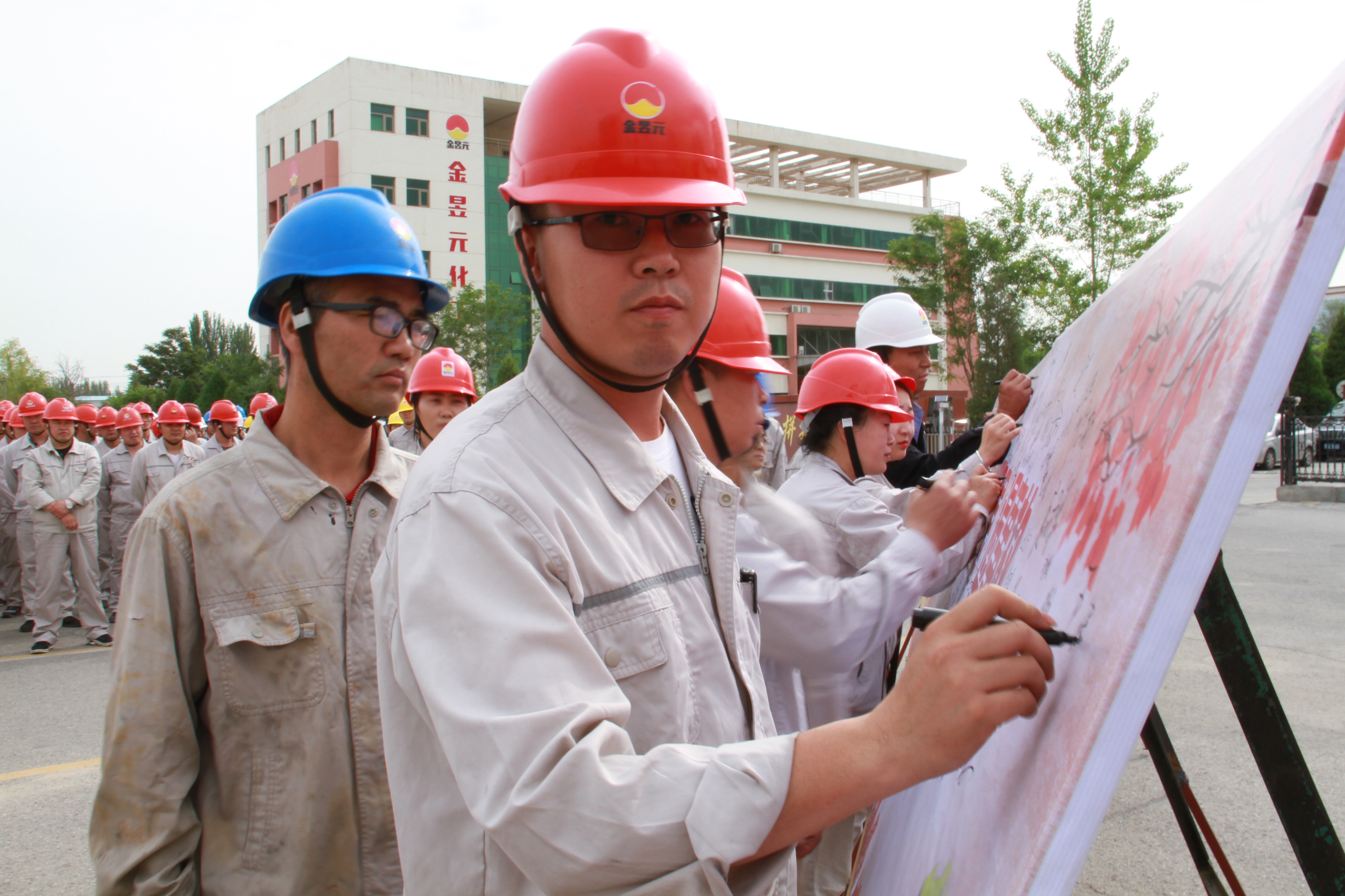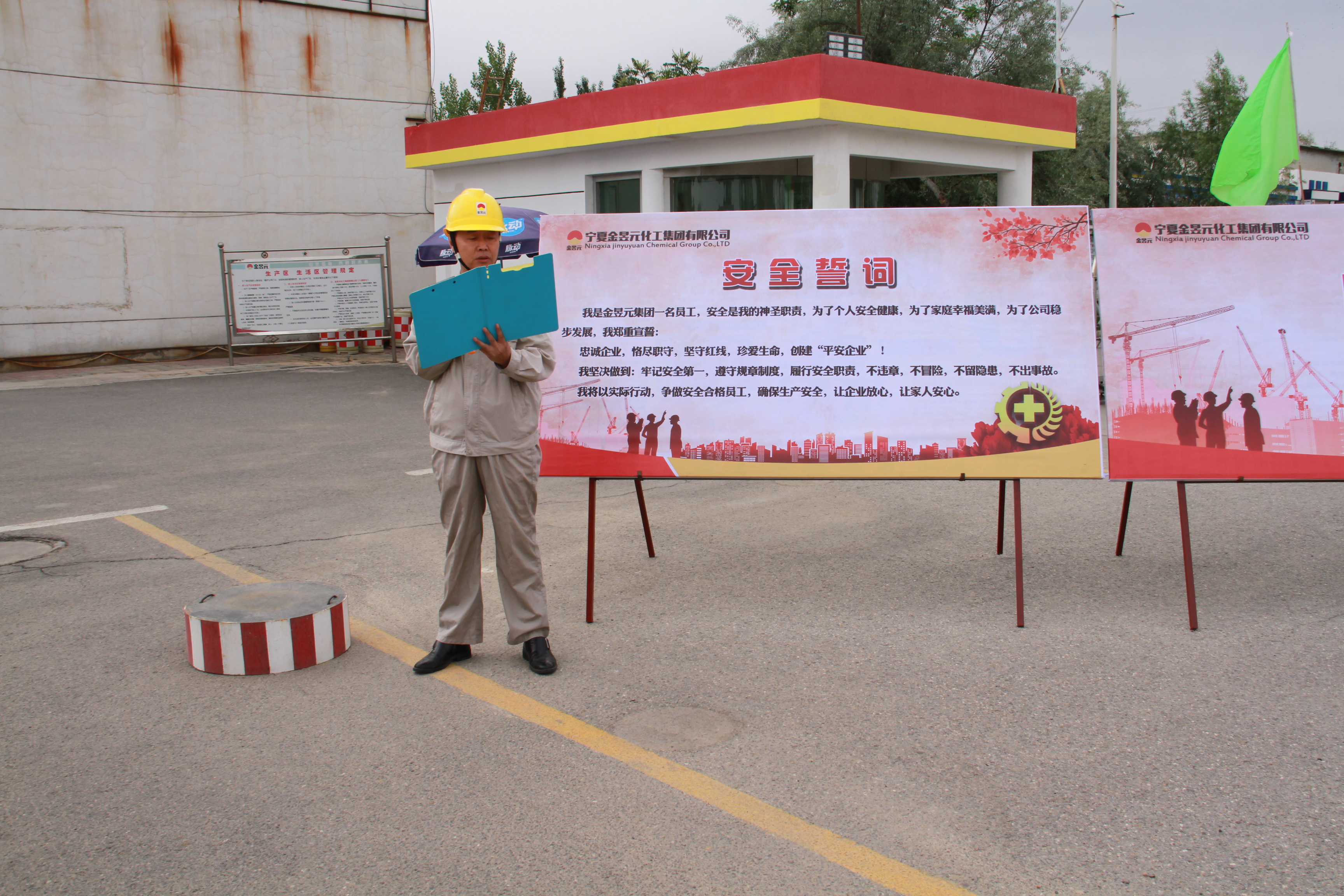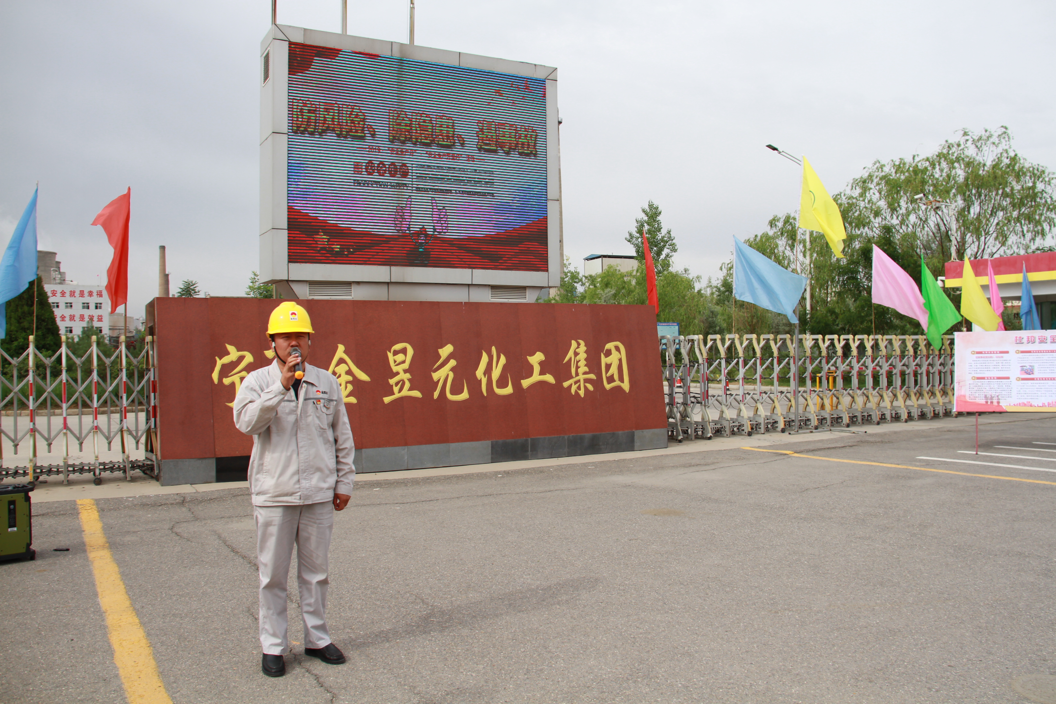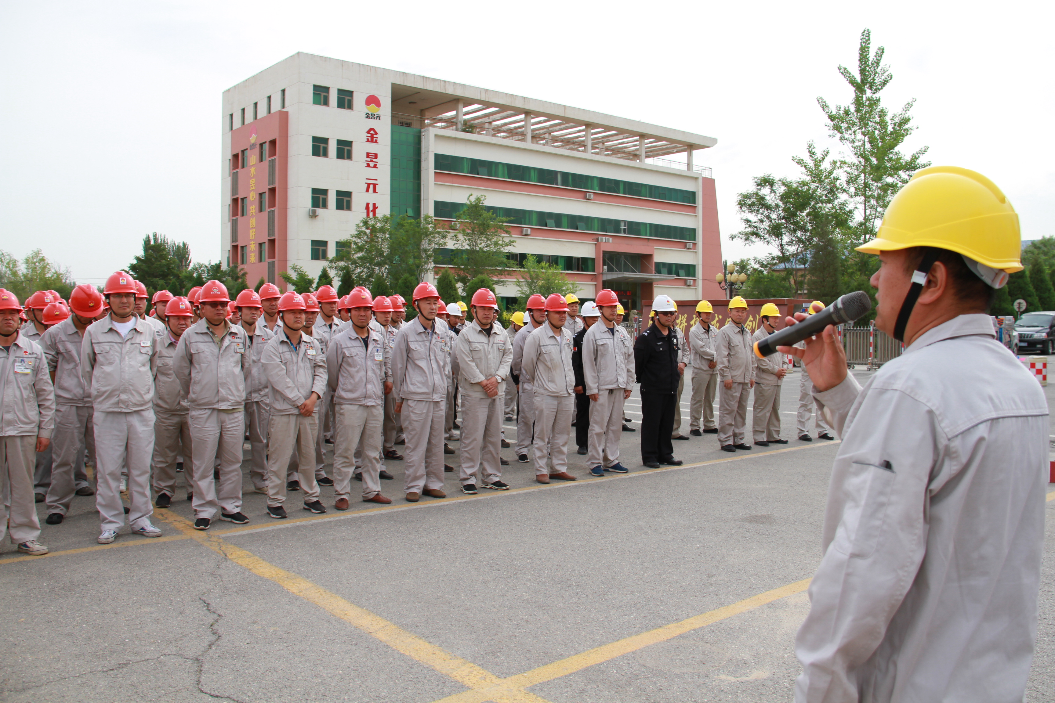 2019年6月4日8点40分许,宁夏金昱元化工集团青铜峡片区安全生产月宣传动员及“安全生产月”活动启动仪式即将召开。能源化学公司厂门口各色彩旗迎风招展,青铜峡片区安全生产部精心制作的一块块各类安全生产知识宣传展板排列整齐一字排开,片区全体日勤人员着装统一,列队整齐,气氛庄严肃静。