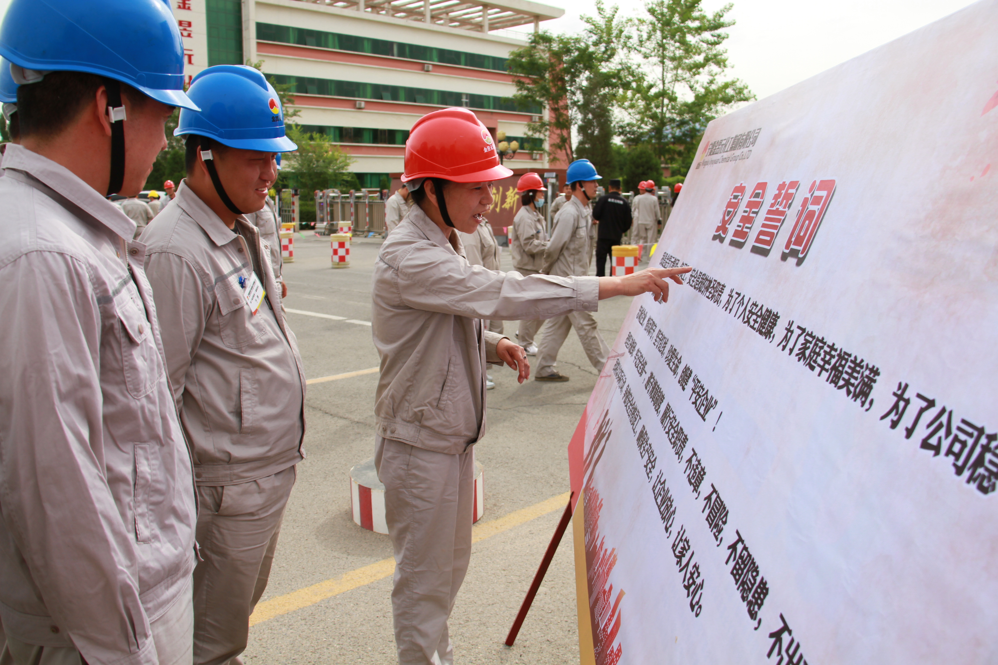 集团公司副总裁青铜峡片区总经理尚兴作仪式启动发言:我们要以全国第十八个“安全生产月”活动为契机,以“防风险、除隐患、遏事故”为主题,在全公司大力弘扬防微杜渐的隐患意识、红线意识、责任意识。严格落实安全生产主体责任,不断提高防灾减灾能力,坚持不懈的普及安全生产知识,进一步提升全员安全生产素质,强而有效的防范和遏制各类事故的发生, 随后叶总领读安全誓词。