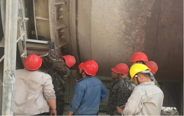 在更换液位计现场,“看来得想其他办法了”。电仪装置装置长王波带领电仪装置班组人员经过商讨,决定利用杠杆原理进行拆卸,即一人站在扶梯上固定螺栓,一人在一米远的平台上撬,终于拧动了生锈的螺栓,将液位计成功拆卸。而此时,他们又接到了一项新的检修任务:检修并紧固窑尾电动机。