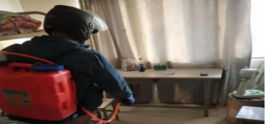 公司安排专人坚持对所属区域内的办公室、值班室、操作场所、检维修作业场所、中控室、职工宿舍等人员密集场所进行消毒一次,对外包劳务公司负责的公司卫生间和劳务人员值班室及宿舍每3小时进行消毒。