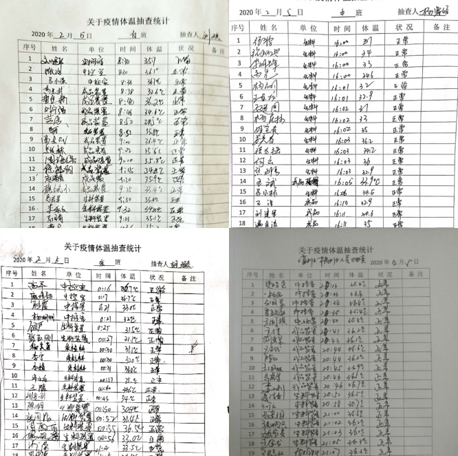 晨检、夜查、登记,管理人员干着和“医务人员”一样的工作,“望”、“闻”、“问”、“切”,及时掌握员工身体状态……