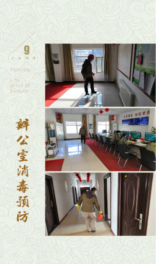 公司要求各单位每3小时组织人员对所属区域内员工公寓楼、办公室、值班室、操作场所、维修作业场所、中控室等人员密集场所进行消毒,对每日早中晚在人员进行体温测量,确保人员处于可控状态。