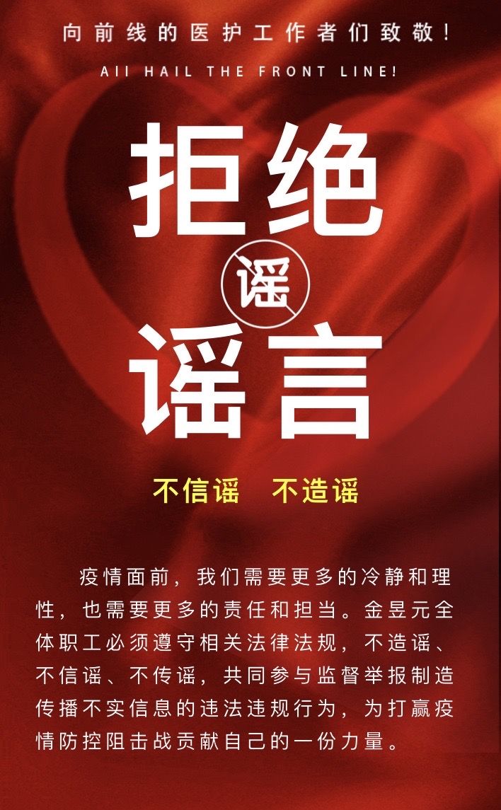 自新型冠状病毒疫情阻击战打响以来,金昱元全体职工团结一心,众志成城、抗击疫情,一股股爱的暖流汇聚成了打赢疫情防控阻击战的强大力量。