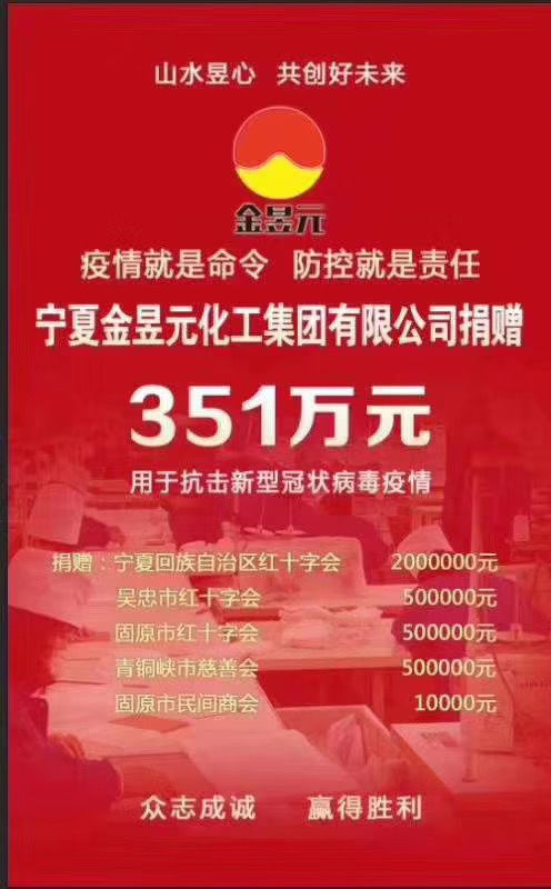 一方有难,八方支援是中华民族自古以来的优良传统。如今我们正处于疫情防控关键期,社会各界都在积极统筹调配资源。宁夏金昱元化工集团也不甘落后,相继向自治区、吴忠、青铜峡、固原捐款351万元,向社会各界捐赠近千吨消毒液。