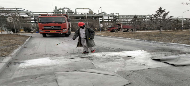 在公司北大门,检查登记、消毒,做好进出厂区人员及车辆登记,全力进行“疫情”防控工作。