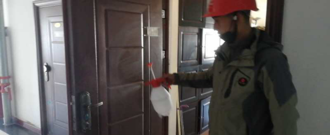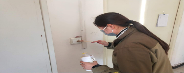 在宿舍,检查留宿人员、进行卫生消毒等“疫情”防控工作。