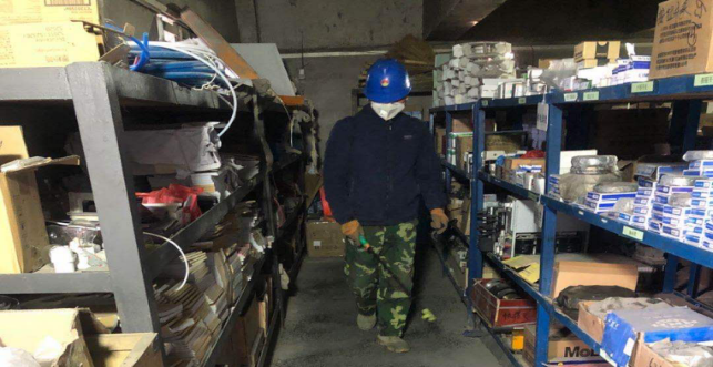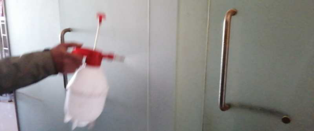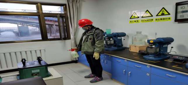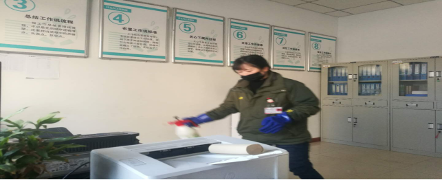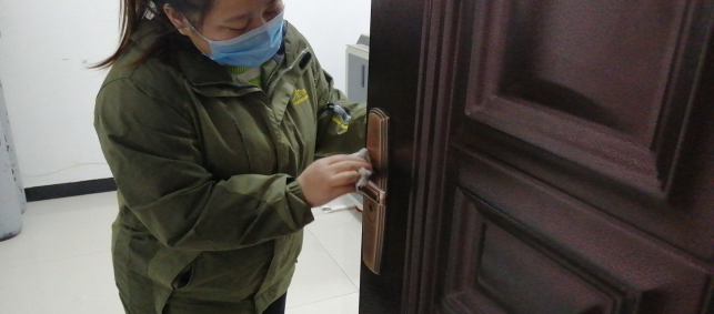 擦拭操作台、门把手,进行卫生消毒,工作的有条不紊。