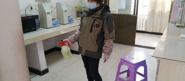 擦拭操作台、门把手,进行卫生消毒,工作的有条不紊。