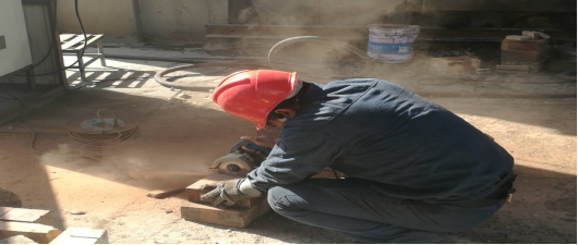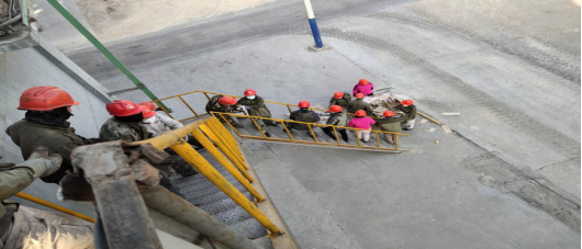 2月19日早上8点动工挖补,到当日下午19:18回转窑点火升温,全体管理人员、成品装置维修工人以及回转窑系统全体在岗工人,在进入检修作业状态的那一刻起,一会儿走入窑内,热气扑面,严肃、紧张的计算和规划,一会儿生产科科长张振忠、成品装置装置长带头抡动着铁锤,工友们或蹲着、或扶着支架,每个人都在挥汗如雨的忙碌着,浅绿色、白色工服上斑斑点点不一的颜色见证着他们流下的每一滴汗水。