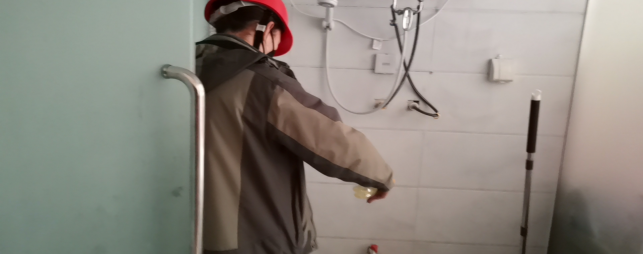 在园区南门,今日截止下午17时整,他们检测、消毒、登记车辆100辆,人员126人,车辆正常,人员体温均在正常范围。