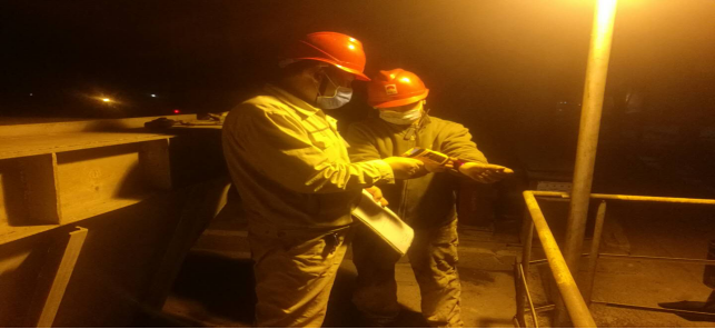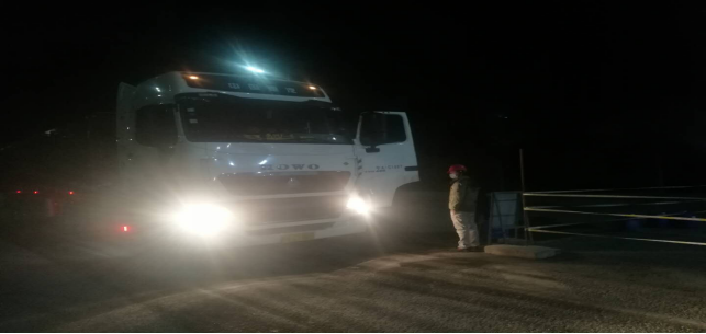 在园区南门,他们截止当日夜间21时40分,面对进出车辆检测、消毒、登记已成为最普通的工作。期间,园区进出车辆127辆(其中水泥23车辆,熟料19车辆,液碱3车),人员132人信息,体温均在正常范围,另外随行38人体温均在正常范围。
