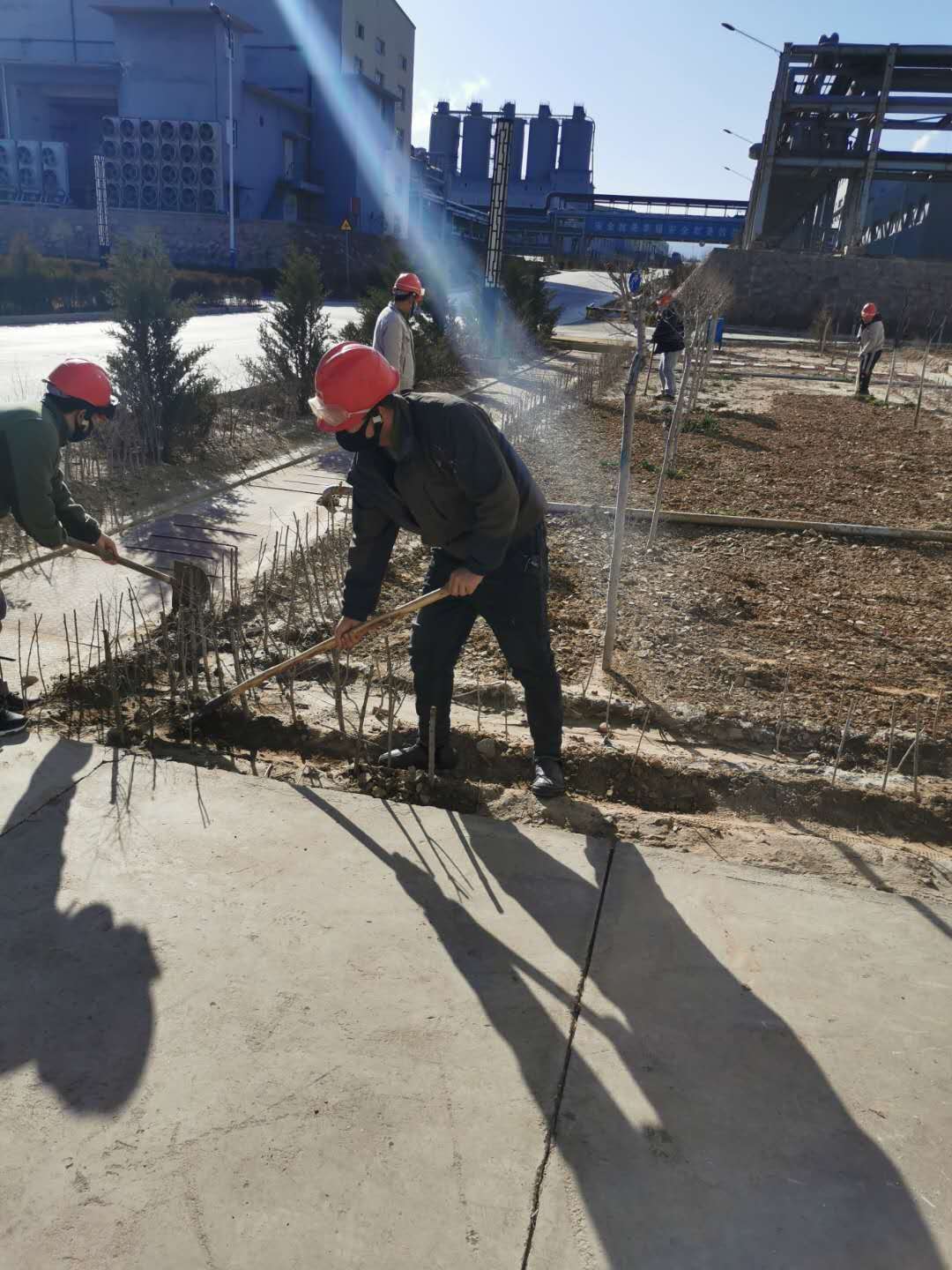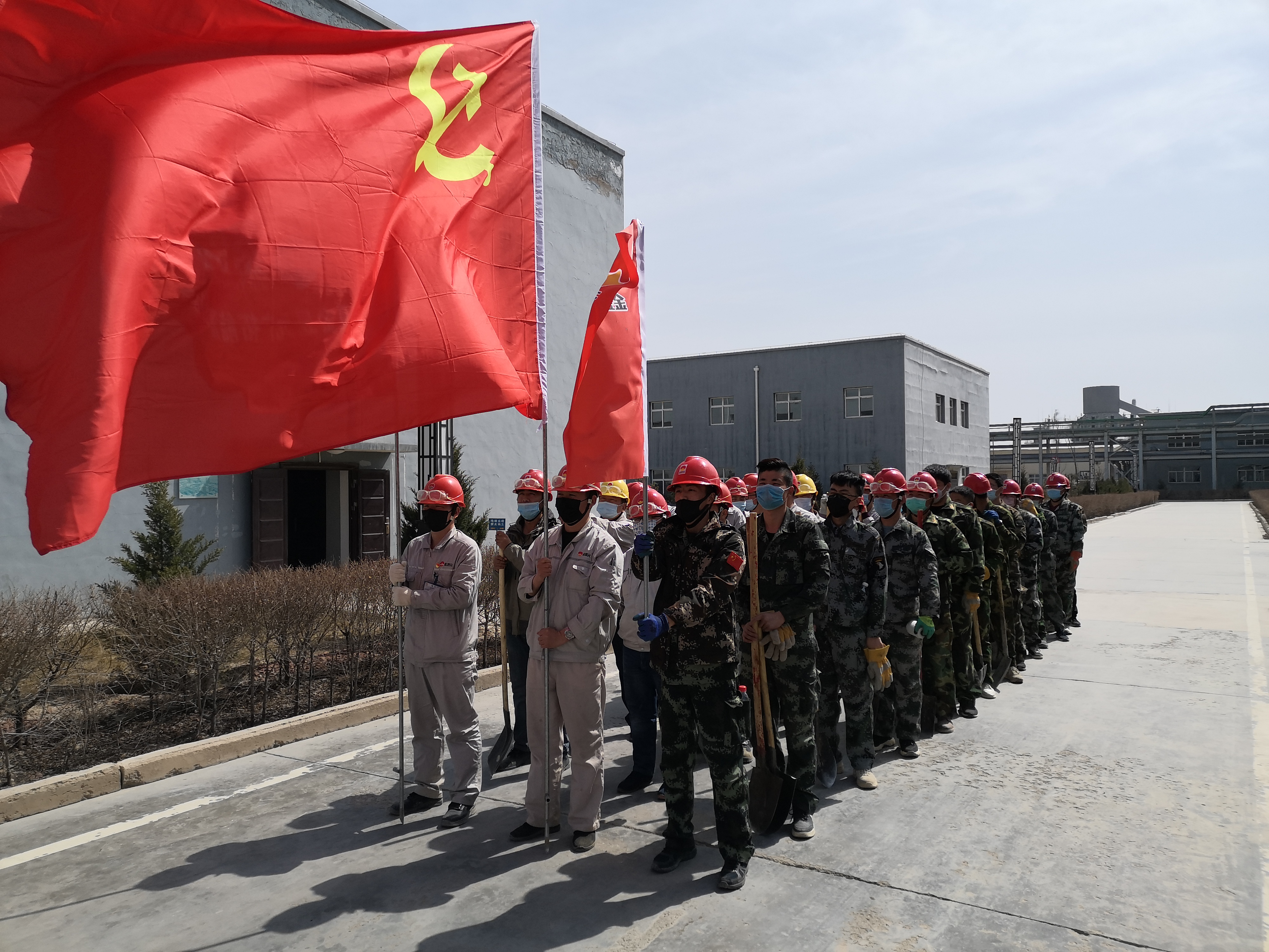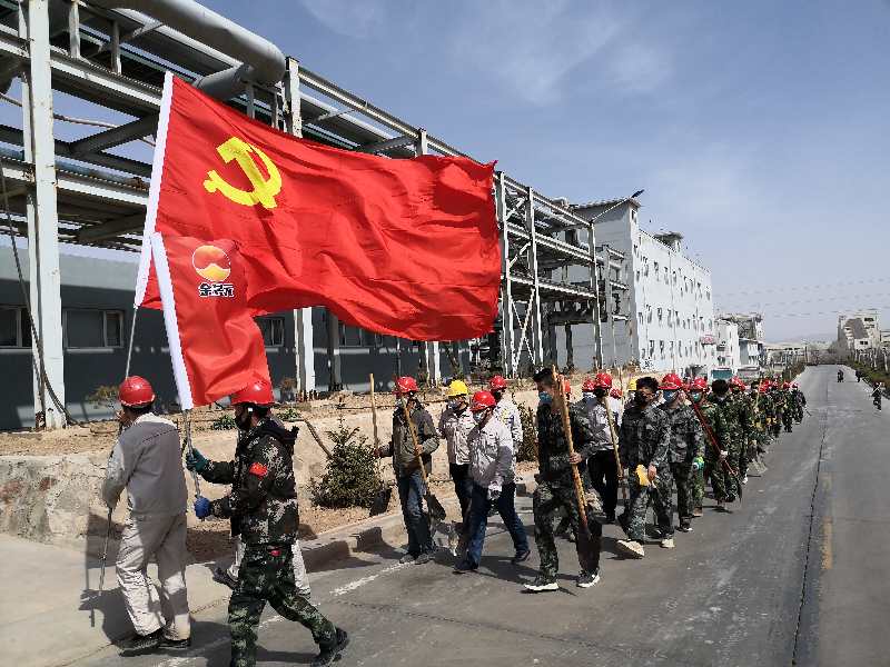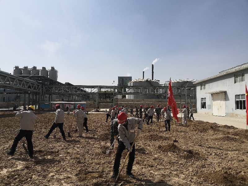 疫情防控下,党员带头坚守一线不松懈。化工公司党支部书记贾存富带头奔赴绿化作业一线,组织各单位党员对液化岗位土地进行平整,身体力行践行“不忘初心,牢记使命”。