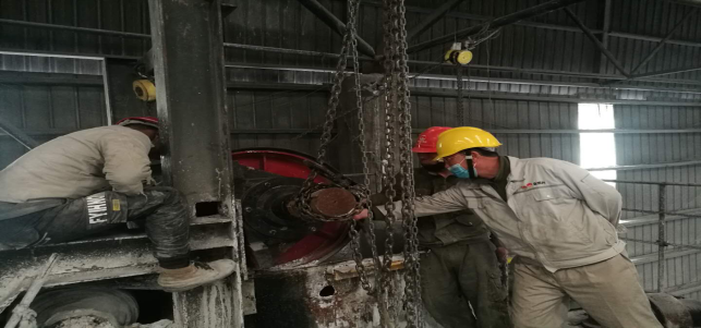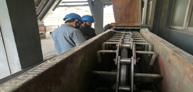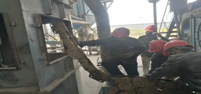 在窑头收尘器拉链机,他们及时拆卸拉链进行更换,校正拉链平衡度。整个过程紧张有序,忙而不乱。无论是公司领导还是一线职工,大家都全身心投入到检修战役中。