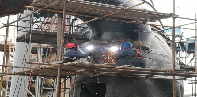 乒乓铛铛敲打声此起彼伏,电焊、气割电火花闪烁不断,脸上的污渍描绘着劳动的色彩,身上的汗水浇灌着希望的花朵,一边是机器轰隆运转,承载无数人的梦想,一边是工人紧锣密鼓,马不停蹄的设备检修……这就是资源循环公司检修正在紧张进行的现场。
