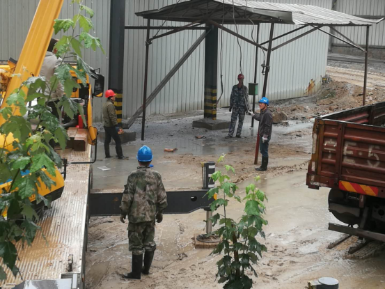 安装窑头排风机、窑尾高温风机,电仪装置装置长王波更是以身作则,风雨中依然亲临现场,亲自带兵指挥,合理地调动安排工作。