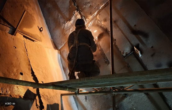 为了配合检修,员工们顶着大风雨提早准备好了工器具,在风雨中,他们依旧兢兢业业,坚守岗位,为了检修质量和安全,他们没有选择草草了事,他们一心只想把工作干好,让设备提早恢复生产。 在窑头密封改造、烘干破管道防腐处理、窑头排风机、窑尾高温风机检修项目中。我们看到,头戴安全帽,身穿雨衣或工作服,身系安全带,在风雨中爬高爬低,雨水渗透了他们的衣衫,模糊了他们的眼睛,但阻挡不了他们对工作的热情和耐心。我们听到,平台传来的一阵阵大锤声,原来他们在对位,紧固更换的小套,在风雨面前,即使万般折磨,他们也不敢有丝毫卷怠。因为每一个环节都深深刻着“责任”二字,“安全”二字。在风声,雨声,大锤声中,仿佛金戈铁马奔驰在沙场上。