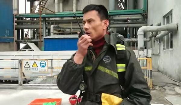 随着现场总指一声令下,应急救援演练正式开始。巡检人员徐强在巡检时发现脱硫氨水罐区发生氨水泄露,现场氨味较大,申请启动氨水泄露事故“应急预案”。情况被迅速层层上报;副经理庄涛指示启动应急处理预案:“确认现场有无人员受伤,落实漏点具体位置,组织消漏”。