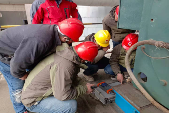 4月13日凌晨6时许,发现高温风机横向振动大,造成严重的安全生产隐患,为窑系统提产、提质造成障碍!为此,以坚持实干为导向,明确责任、担当作为、加压奋进,管理人员召开总体分析会,细化任务,合理安排人员互相配合,抢时间,抓进度,确保隐患尽快消除。