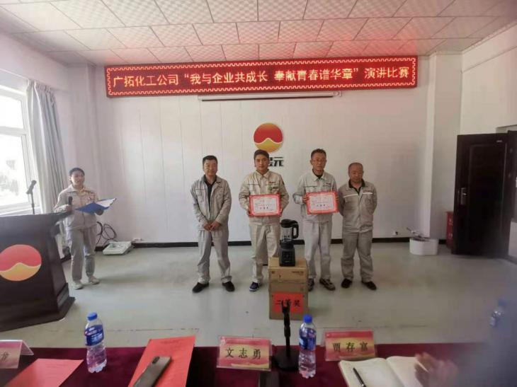 为庆祝中国共产党成立100周年和金昱元建厂30周年,进一步弘扬我公司的企业文化,激发职工干事创业、高效跨越发展的活力,凝聚企业持续和谐发展的合力。2021年5月27日,宁夏金昱元广拓能源有限公司举办了关于“我与企业共成长•奉献青春谱华章”主题演讲比赛活动。