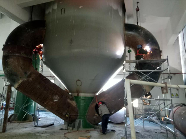刚开始系统就像新生的婴儿,还不会走,由于缺乏生产经验,现场漏点多,堵管频繁,运行三台离心机需要四个人操作,由上到下一直要敲打管道,才能将盐甩出,再通过皮带输送至栈桥,在栈桥操作又要三个人同时共同努力,才能顺利将盐送入散湿盐仓。