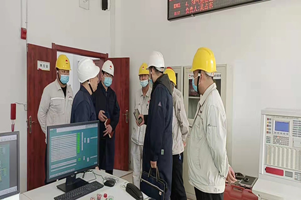 其次,王群专家、贺健勇专家及郭涛郭副局长在片区副总经理叶瑞海、公司总经理王铁锁、副总经理马泽、安全总监邹永清及各职能科室主管的陪同下,对集控楼中控室进行了现场督查。