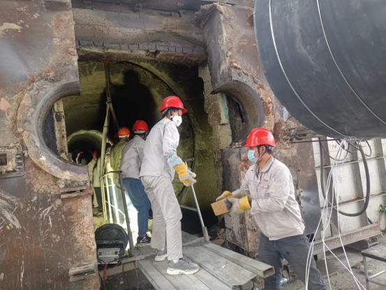 4月8日8:30—23:00分,在一片紧张有序的指挥中,展开了争分夺秒的窑砖挖补工作。这里有公司领导、职能科室、质检科及生产装置全体员工。在现场,他们齐心协力、同舟共济、相互打压加气,每一块砖凝结着每一位员工心血。直至深夜,每个人坚持工作的最后一刻,从他们的表情中,可以看出,那种屏住呼吸、动作标准、目光坚定,无不诠释着对工作的履职尽责。