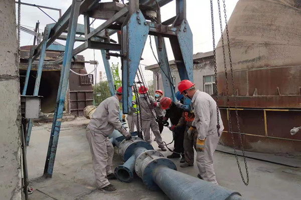 团队是什么,是为了实现一个共同的目标而集合起来的人。 任何一个人的力量都是渺小的,只有融入团队,只有与团队一起奋斗,劲往一处使,你才能实现个人价值的最大化,你才能成就自己的卓越!伴随副总经理一声令下,所有人员喊着豪迈的口号,配合吊机的力臂推动着奇重无比的喷煤管一点一点的前行。又一会功夫将回转窑门缓缓调至检修现场安全的位置。