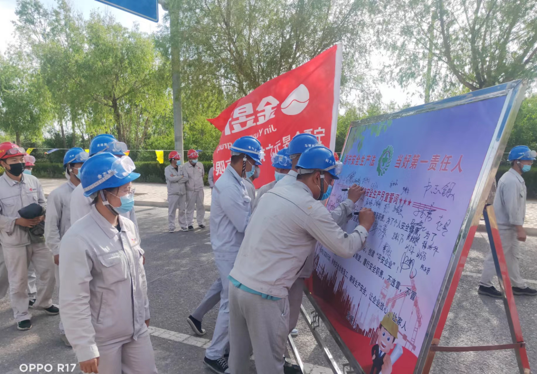 启动仪式上,安全总监带领全体参会人员进行了庄严宣誓,每一位员工都做出了自己对待安全工作的承诺,并签下自己的姓名。