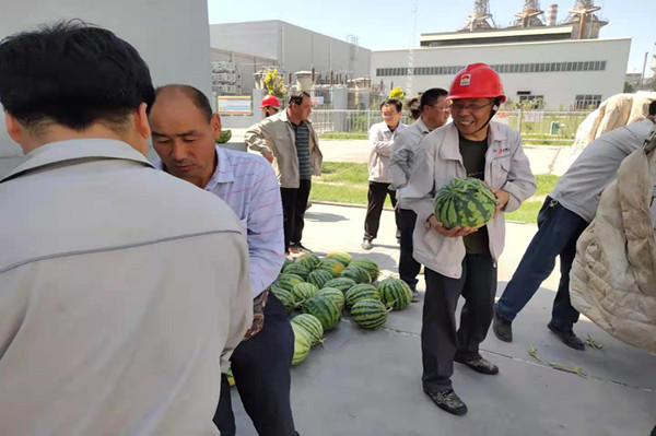 2022年7月集团公司工会主席来一线现场,为广大一线职工送来新鲜采摘的西瓜。正是一天中气温最高的时候,烈日炙烤着大地,整个空气热气腾腾。为坚守在一线的干部职工送来夏日的清凉。并详细了解了职工的日常工作情况和高温劳动防护措施情况,叮嘱干部职工在一线及外出工作时做好防暑降温措施,注意劳逸结合,保障自身的安全健康。这些防暑降温用品虽然不贵重,但它表达了工会关心职工、体恤职工的浓浓情意,也在炎炎夏日为广大干部职工带来一丝惬意、一缕清凉。大家一致表示,会将这份关怀转化为努力工作的动力,将鼓足精气神,尽心尽力做好本职工作,为公司发展作出应有的贡献。