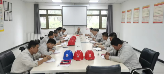 会前副总经理梁军首先组织学习了某水泥厂回转窑停车检修窑筒体冷却风机做动平衡检测,由于“安全带悬挂不当”,造成人员受伤的安全经验分享,通报了全国、全区及行业内部上半年安全形势。