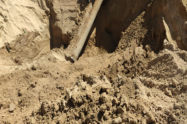 8月24日晚上22时30分,盐业公司矿部至园区淡水流量下降,调度室及时将情况汇报给相关领导,并安排采输卤装置和盐硝装置分段巡查淡水管道。经巡查发现,因连续降雨天气,淡水管道水泥西门深沟处因土壤下陷导致管道连接处钢衬法兰呲漏。