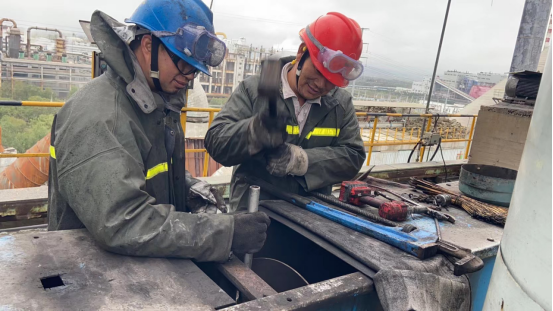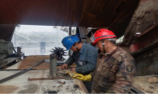 听,现场铁锤叮当,看焊花四溅,一幕幕忙碌的身影,无不令人感动不已......刚顺着楼梯趴下,又要顺着楼梯爬上,总经理吴红卫同志既是现场的指挥员、进度的监督员,又是现场的协调员,哪里需要怎样干,他便第一时间提出自己的见解。映入眼帘的是他总是第一时间到达现场,最后一个离开,一身劳保衣服一天下来总要背着一层土。正是这种带动,全体维修人为了不窝工,不影响进度,午饭总是简单的填饱肚子继续干,个个干劲十足,衣服早已被油污和灰尘、汗水掺杂浸湿,黑乎乎的脸蛋也分不清谁是谁。