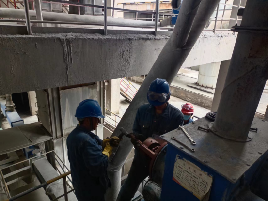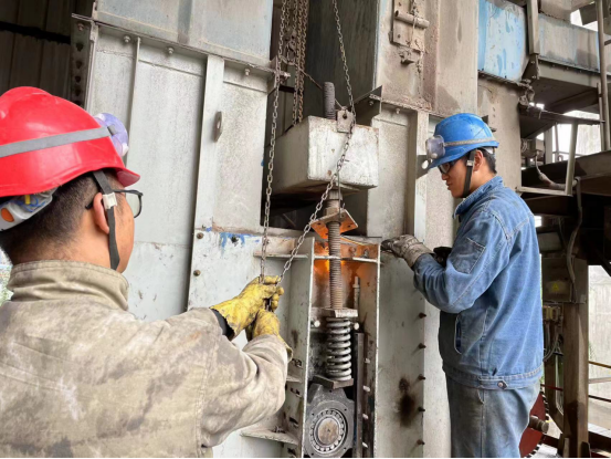 安装技术要求高、安全风险大的项目,总经理吴红卫同志牵头组织召开碰头会,拿出技术方案,确保安装精度、密封等满足要求。特别是回转窑大齿圈、烘干破旋风筒补焊、窑头电袋收尘器检查、预热器更换挂片、生料磨辊压机堆焊等检修项目,牵头组织风险设别,确保安全受控。对于检修周期长及环境温度要求高的检修项目(工艺耐火砖及浇注料),合理安排施工时间,倒排施工节点时间,按计划节点要求完成检修任务。