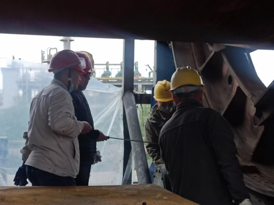 为确保检修工作有效推进,检修前、检修中公司积极组织相关装置负责人及8家外协单位召开检修动员会、安全交底和检修工作推进协调会,进一步强调重点项目工程,要求各级人员以“高、严、细、实”的工作作风投入到检修工作中,发挥榜样示范作用,营造良好的检修工作氛围。安环生产科以技术指导、安全督查、质量验收为目标,切实为检修工作全面开展做好保障。