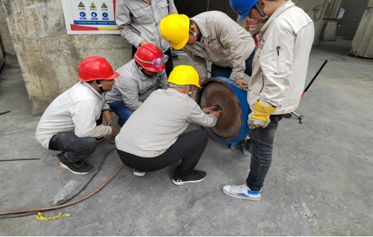 “加油、加油......”9月30日上午7时00分,一夜没有眨眼的总经理吴红卫同志,身先士卒,再次深入预热器检修现场,与公司领导班子、生产科室负责人、专业主管、装置管理人员及参检人员一同进行装置开工前的准备工作——工艺管道疏通。