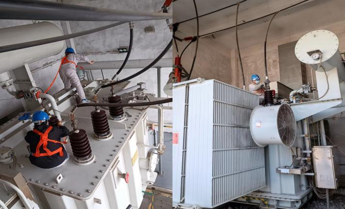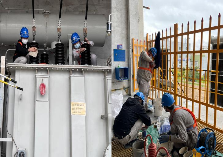 一切准备工作就绪,首先整流现场对变压器进行放电、验电挂接地线,螺丝紧固除尘及硅胶更换,俗话说的好,谁说女子不如男,这次显然不同的是,由女生进行此次变压器的检修工作,虽然辛苦,但这是锻炼我们的机会,是学习增长知识的机会,因此再苦再累也必须坚持。