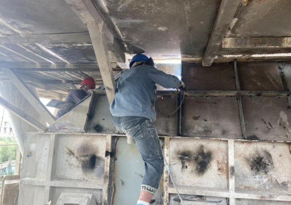 记的有一次设备大抢修,余伟和几位维修师傅更换篦冷机2623拉链机导轨和链条。那天,正逢夏季烈日炙烤;但是由于抢修任务紧,丝毫没有喘气缓一下地机会。一道道美丽的电焊弧光照亮了那早已汗水打湿的脸颊,脸颊上布满了灰尘和晶莹的汗珠,那才是体现出来的一种爱岗敬业的美。