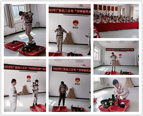 为了提高员工安全防范意识,普及空气呼吸器的佩戴方法,更好的提升员工对待突发事故的应变速度和处理能力,广拓能源公司于2023年3月16日举办空气呼吸器佩戴比赛。