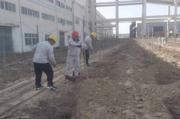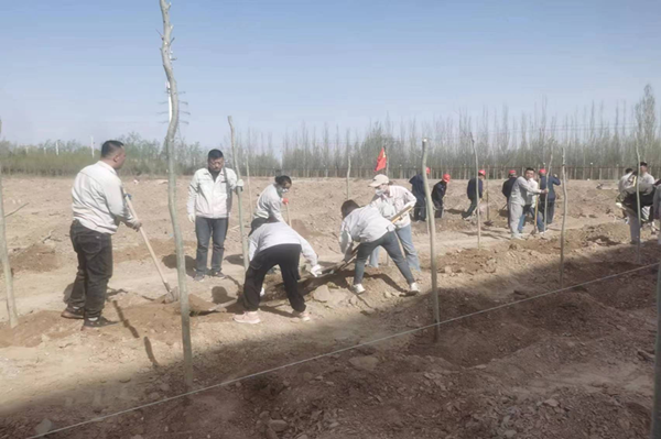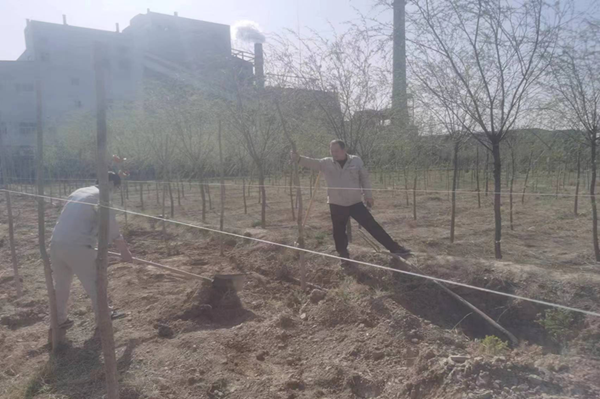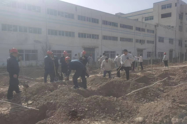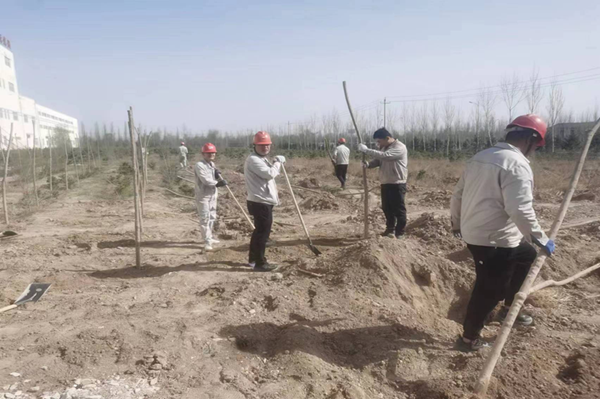 春光明媚的四月,万物复苏,春风吹绿了枝头上的嫩芽,吹绿了地上的小草,大地上的每一个角落都充满了春天的气息。在这美好的季节,公司全体领导干部和一线员工积极、主动参与植树活动。植树现场,大家干劲十足,挽起衣袖、拿起铁锹,为一棵棵新树苗安置"新家"。今年种植新疆杨2200多棵、丝绵木650棵、大松树近300棵、小榆树30000棵,为新的春天又增添了一抹盎然的绿意。看着那一片片自己亲手种下的树苗在微风中摇曳,无不露出幸福的笑容,在一张张的照片中和镜头里留下了自己美好的回忆。