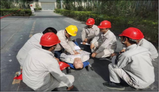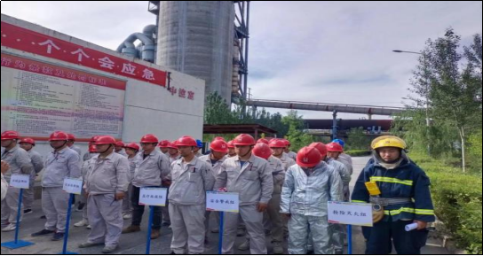 生料装置、成品装置分别组织开展一次“机械伤害事故”及“预热器清堵烧伤事故演练”现场应急处置方案演练,电仪装置和质检科分别组织开展一次“配电室火灾事故”及“药品灼烫事故”现场应急处置方案演练。通过演练找出应急管理和事故处置过程中存在的不足和短板,从而不断完善和优化,让全体从业人员时刻牢记安全生产岗位责任,熟知安全逃生出口(或避灾路线),从而提高应急救援和事故处置能力,进一步完善预案的严谨性、针对性和可操作性。