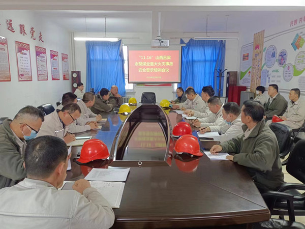 11 月 16 日,山西吕梁市永聚煤矿一办公楼发生火灾,造成 26 人遇难,38 人受伤。事故发生后资源再生公司由总经理牵头、安环科组织观看事故现场视频报道。为切实压紧压实各级管理人员消防责任,提高全员火灾预防和消防安全意识,切实防范重大消防风险隐患,深刻吸取事故教训,举一反三、警钟长鸣,结合公司实际生产情况,扎实开展生产现场、办公区和生活区消防安全风险隐患大检查大整治活动。