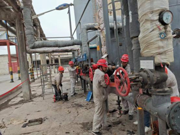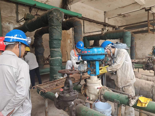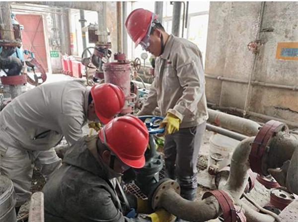 各装置克服检修点多面广、检修环境差、人员少等困难,精心组织、合理安排,使检修工作有序推进,装置各级管理人员以身作则与现场检修人员共同奋战在现场,无论是烈日的暴晒,还是黄沙的肆虐,都不能阻挡他们与维修工共检修的决心。他们与现场检修工奋战在检修现场的每一个角落,清油污、开人孔、拆法兰、换阀门, 他们的身影无处不在,这种身先士卒的精神,辐射带动起全体检修人员的干劲。在每个检修现场,职工们都精神抖擞,全心全力投入检修工作,为了赶进度,他们自觉放弃午休时间,在检修现场简单吃点饭后,又继续投入检修中。夜幕降临,厂区内灯火辉煌,参与检修的人员发扬不怕苦、不怕累,连续作战的精神战斗在检修现场。