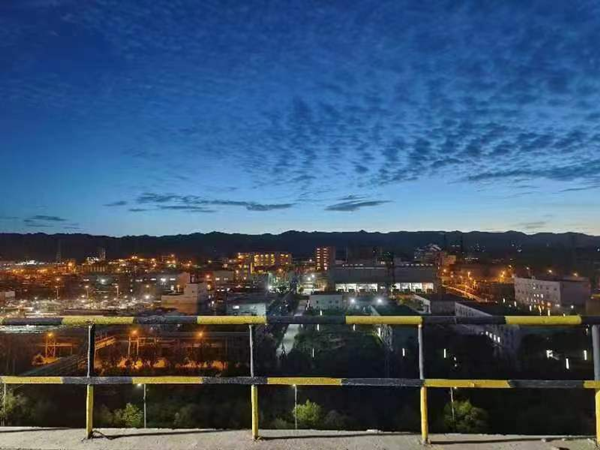 隔着厂房的灯火,