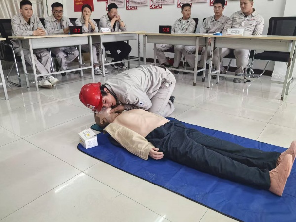 比赛现场,参赛队员们个个精神抖擞、斗志昂扬。“心肺复苏操作”“正压式空气呼吸器穿戴”两个项目,选手们争分夺秒却有条不紊:检查患者意识和呼吸、检查气瓶压力、调整背带松紧、佩戴面罩并测试气密性……一套流程行云流水,展现出扎实的技能功底与高度的安全意识。活动现场,公司安全总监铁旭东、安全主管何宁、海什全程监督评分,并针对操作细节进行实时监控,将比赛转化为安全培训课堂,达到竞赛和培训相结合。参赛职工纷纷表示,通过比武不仅提升了应急处置能力,更深刻体会到规范操作的重要性。